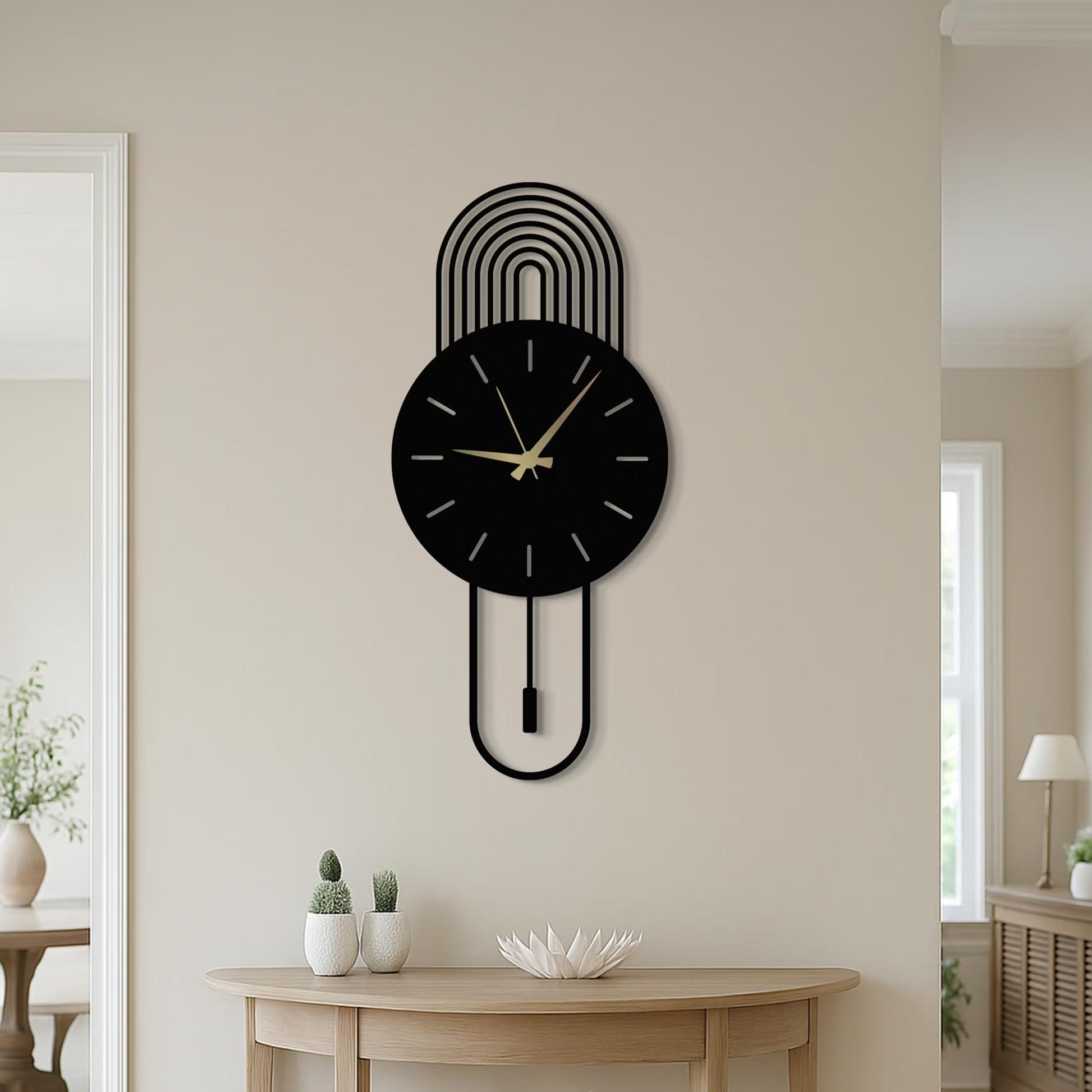Elevate your space with our Luxury Oversized Metal Wall Clock, expertly crafted for both style and function. Featuring a concealed hanger, installation is effortless—just one nail creates a sleek, floating display. Available in six elegant finishes including Gold, White,gray, Silver, brown, and Black, each clock boasts a textured static powder coating for durability and a refined look. Ideal as a sophisticated gift for any occasion, this clock can also be customized to match your unique vision, blending artistry with precision timekeeping.